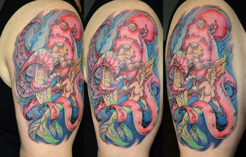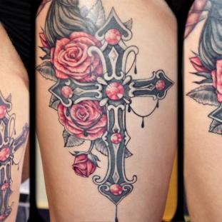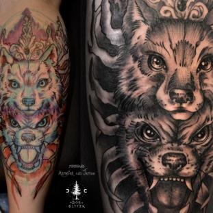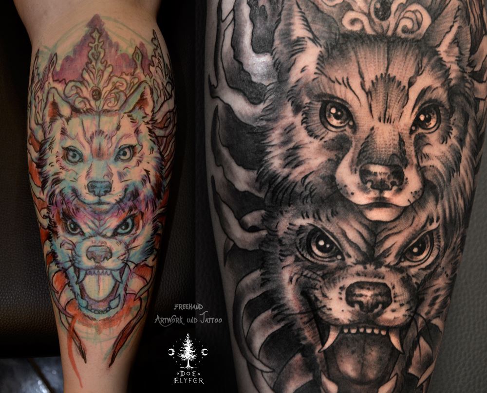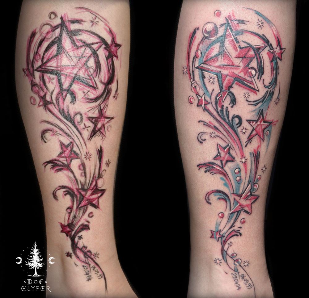 Für meine Tätowierungen benutze ich hochwertigste Materialien, nicht nur für ein hygienisch einwandfreies Arbeiten sondern auch für langanhaltend schöne Bilder mit klaren Farben und lebendigen Kontrasten - auch noch Jahre später. Nach einer ausführlichen Beratung und der gemeinsamen Motivfindung bringe ich zunächst die Tattoo-Vorlage an der gewünschten Körperstelle an. Während meiner Ausbildung bekam ich die Gelegenheit das freihändige Aufzeichnen zu erlernen. Diese Methode bietet viel Raum für künstlerische Freiheit. Es entstehen dynamische und einzigartige Vorlagen, welche die dreidimensionalen Formen des Körpers berücksichtigen. In Kombination mit detaillierten Schablonen bereite ich so die perfekte Grundlage für dein ganz persönliches Tattoo. Dann muss nur noch tätowiert werden! Kontakt]